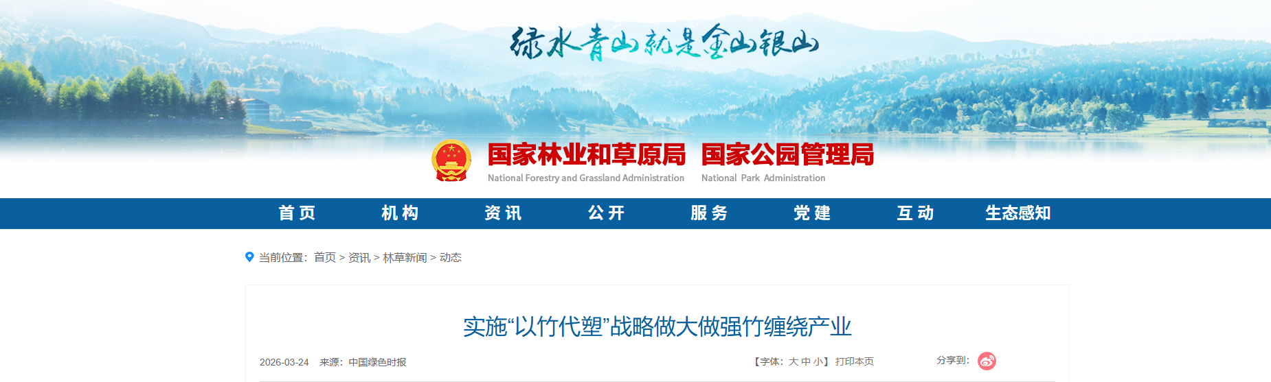 十四届全国人大四次会议表决通过的《政府工作报告》和《国民经济和社会发展第十五个五年规划纲要》,立足新发展阶段,对加快发展新质生产力、推动绿色低碳转型、建设现代化产业体系作出全面部署,把“以竹代塑”纳入国家发展战略布局。《纲要》明确提出加快“以竹代塑”发展,将其定位为构建绿色生产生活方式的关键抓手,这为绿色新材料产业发展注入了强大动力,为竹缠绕复合材料发展提供了前所未有的战略机遇。深入学习贯彻两会精神和“十五五”规划部署,就要深入实施“以竹代塑”战略,加快推进竹缠绕产业高质量发展,更好践行“双碳”目标、扩大培育新质生产力。